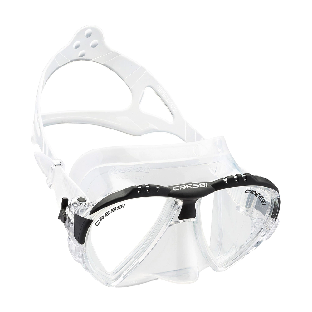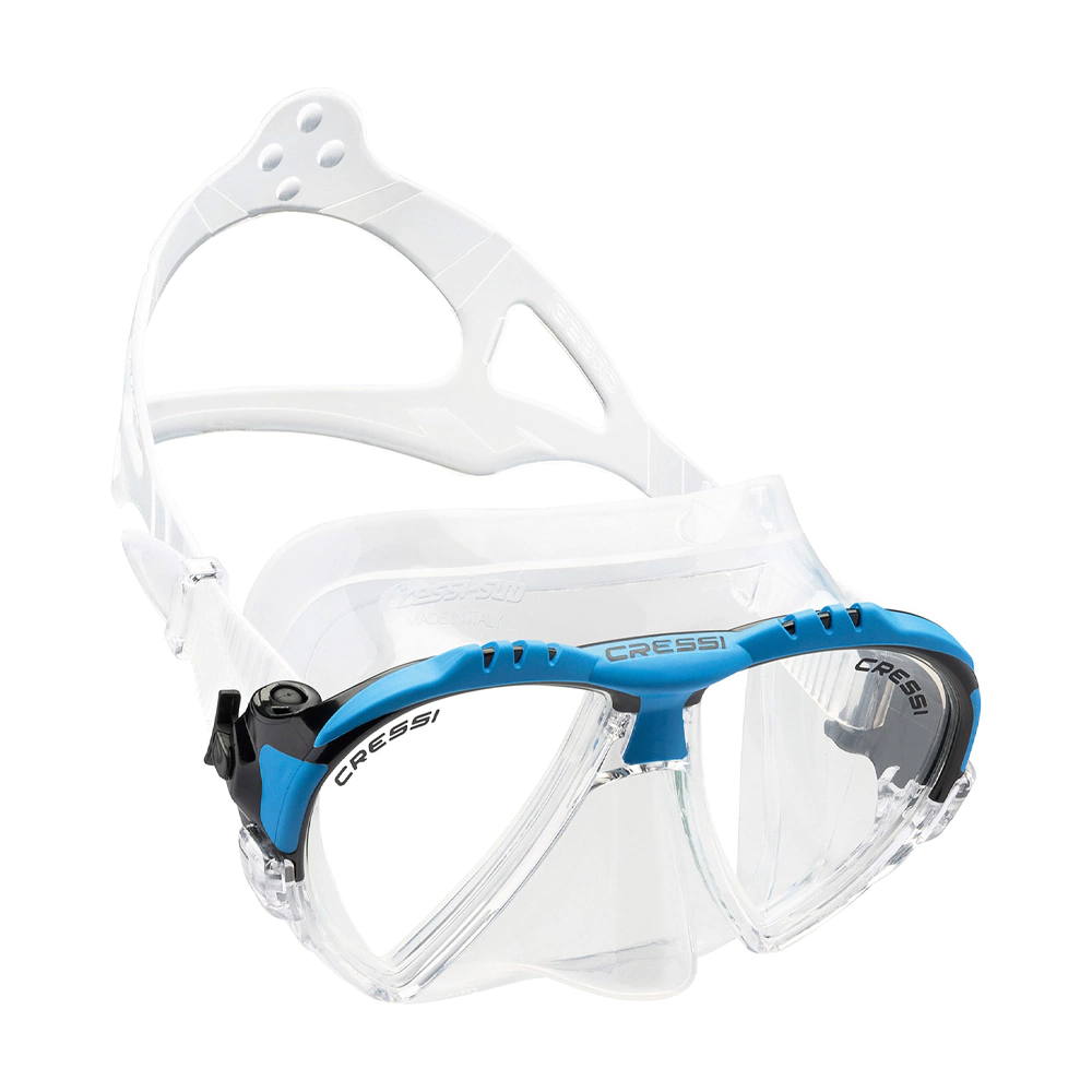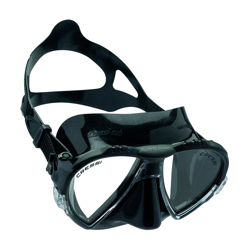 La reducida estructura del marco y el facial de adaptación "en plano" permiten una gran aproximación de los cristales a los ojos sin problemas de contacto con la montura, Se reduce, por lo tanto, al mínimo absoluto el volumen interno y se anula toda visión de la zona central del marco desde el interior, Los cristales inclinados 15º y prolongados por encima de los pómulos incrementan la visibilidad inferior más de un 30% respecto a la de una máscara tradicional, mientras que la visibilidad superior y lateral se incrementan hasta el límite que permite el propio grosor de la montura: visión total - 5% en visibilidad superior y visión total -10% en visibilidad lateral,