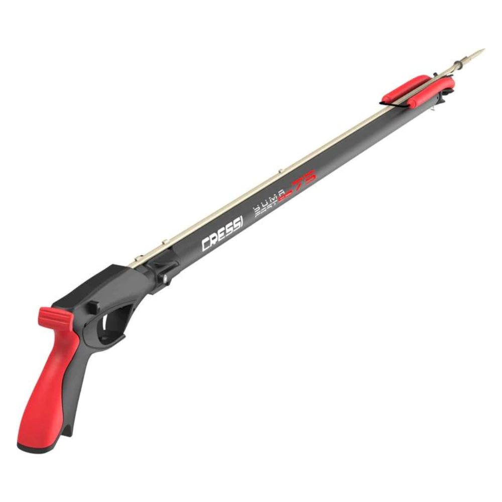 Marco anticorodal negro con guía de lanza integrada, empuñadura de plástico de ingeniería reforzado con fibra de vidrio, soporte esternal blando integrado. Caja de disparo ultraligera con mecanismo de desbloqueo en AISI 316. Acoplamiento de carrete en cola de milano. Cabezal para doble elástico con bloqueo de lanza magnético: tan pronto como se coloca la lanza, se sujeta mediante dos imanes montados en una cámara estanca. Esta característica garantiza la máxima velocidad de rearme sin los inconvenientes de los sistemas de contención mecánica convencionales. El fusil se suministra con doble banda de látex natural de 14 mm, con obús de Dyneema.