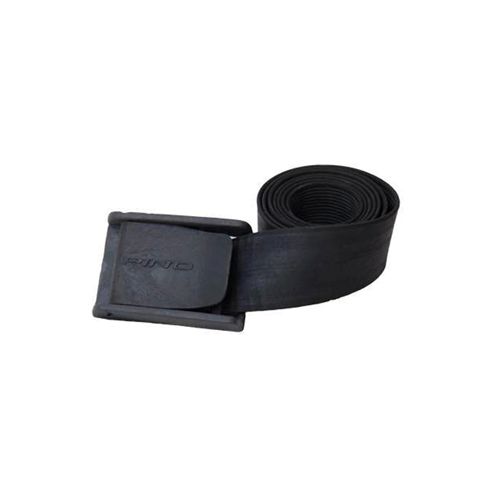 El cinto de goma, fabricado de goma vulcanizada, posee la elasticidad perfecta para ajustarse a la cintura del apneista e impedir que se corra durante el descenso, Su superficie interna, la que hace contacto con el traje, intensifica este efecto a través de los surcos antiderrapantes,